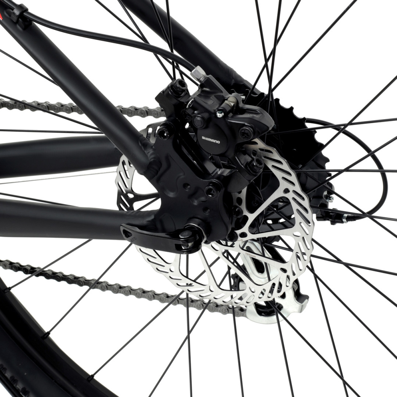 Дисковые гидравлические тормоза Shimano MT-200 обеспечивают надежное и мощное торможение в любых погодных условиях.